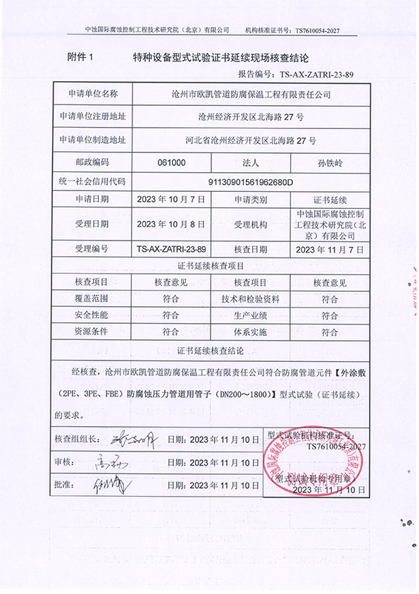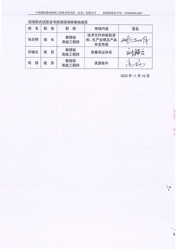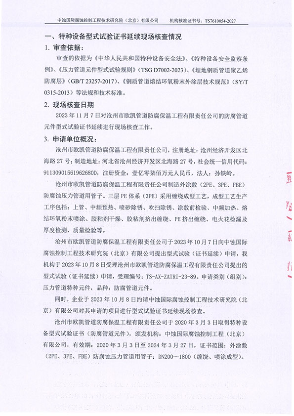 特種設(shè)備型式試驗證書延續(xù)現(xiàn)場核查報告